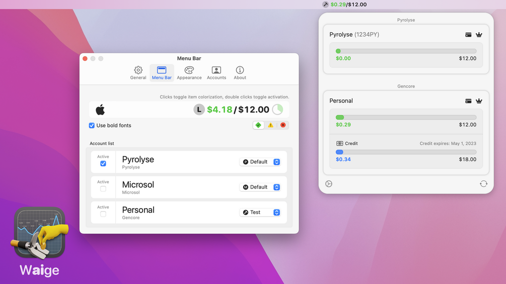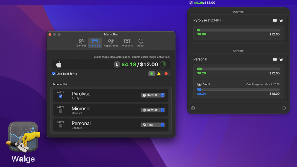 Introducing Waige, the menu bar app that helps developers and AI enthusiasts keep track of their OpenAI API usage and costs.